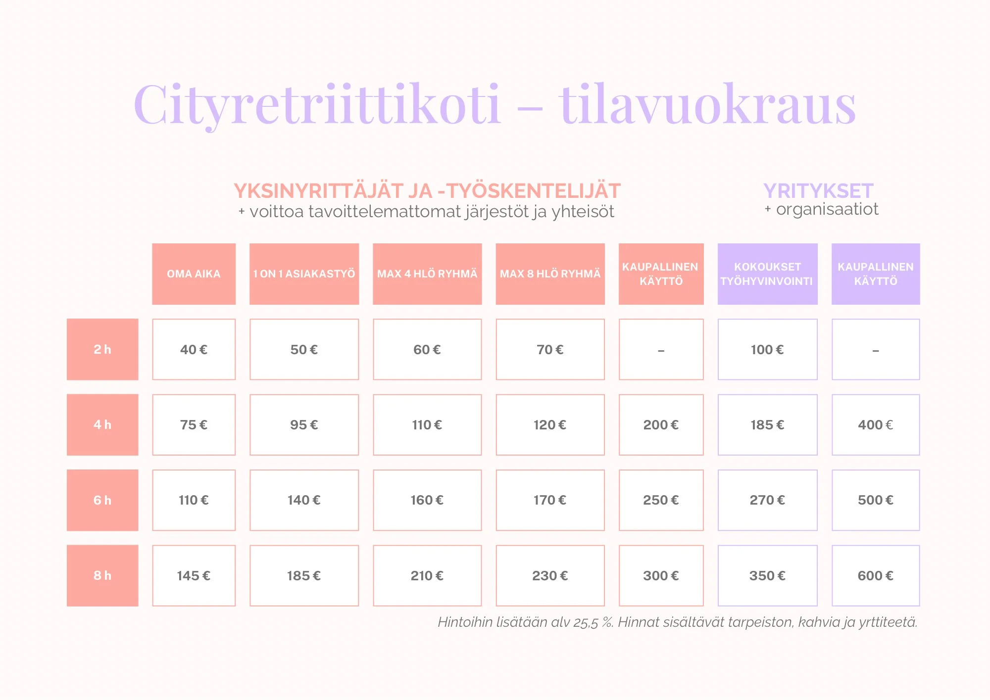 Cityretriittikoti – PALVELUT